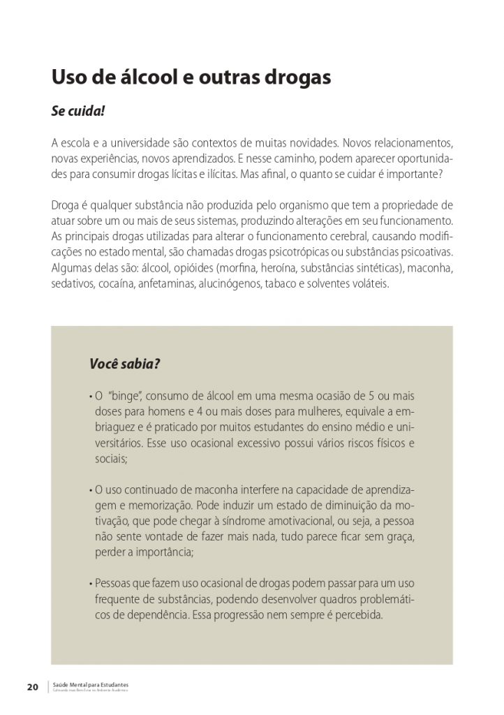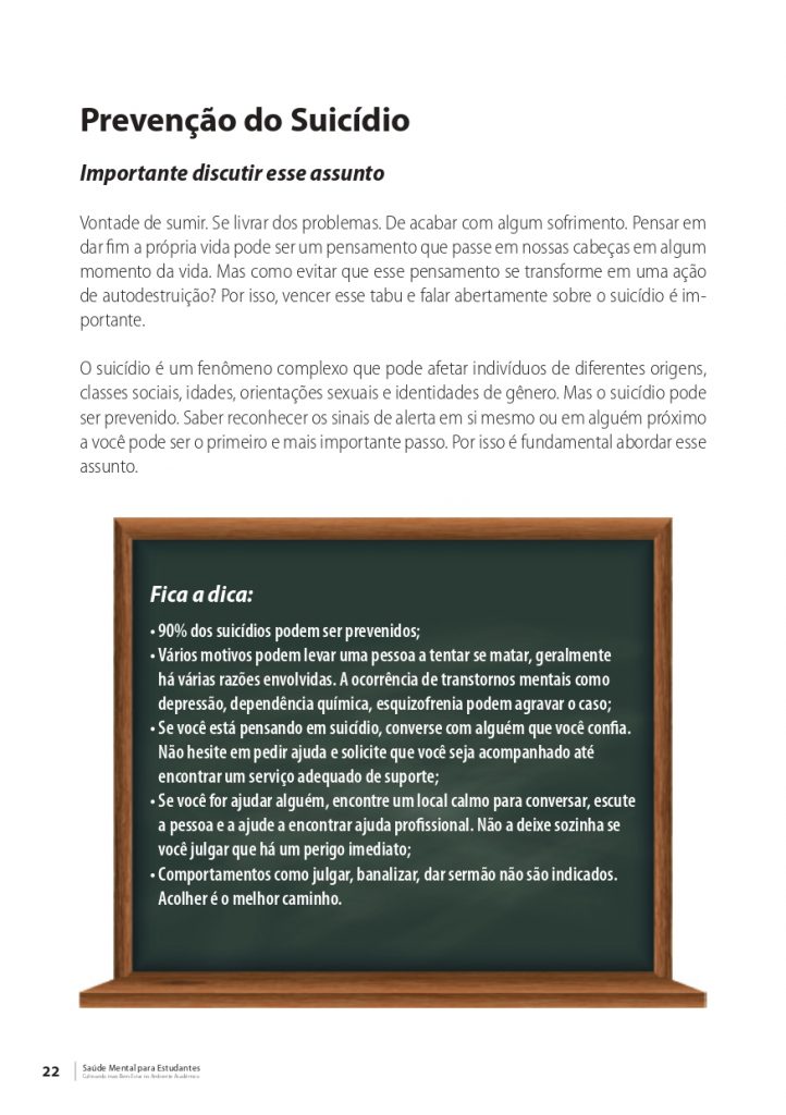 Versão online da Cartilha “Saúde mental para estudantes: cultivando mais bem-estar no ambiente acadêmico”, em pdf, para download.